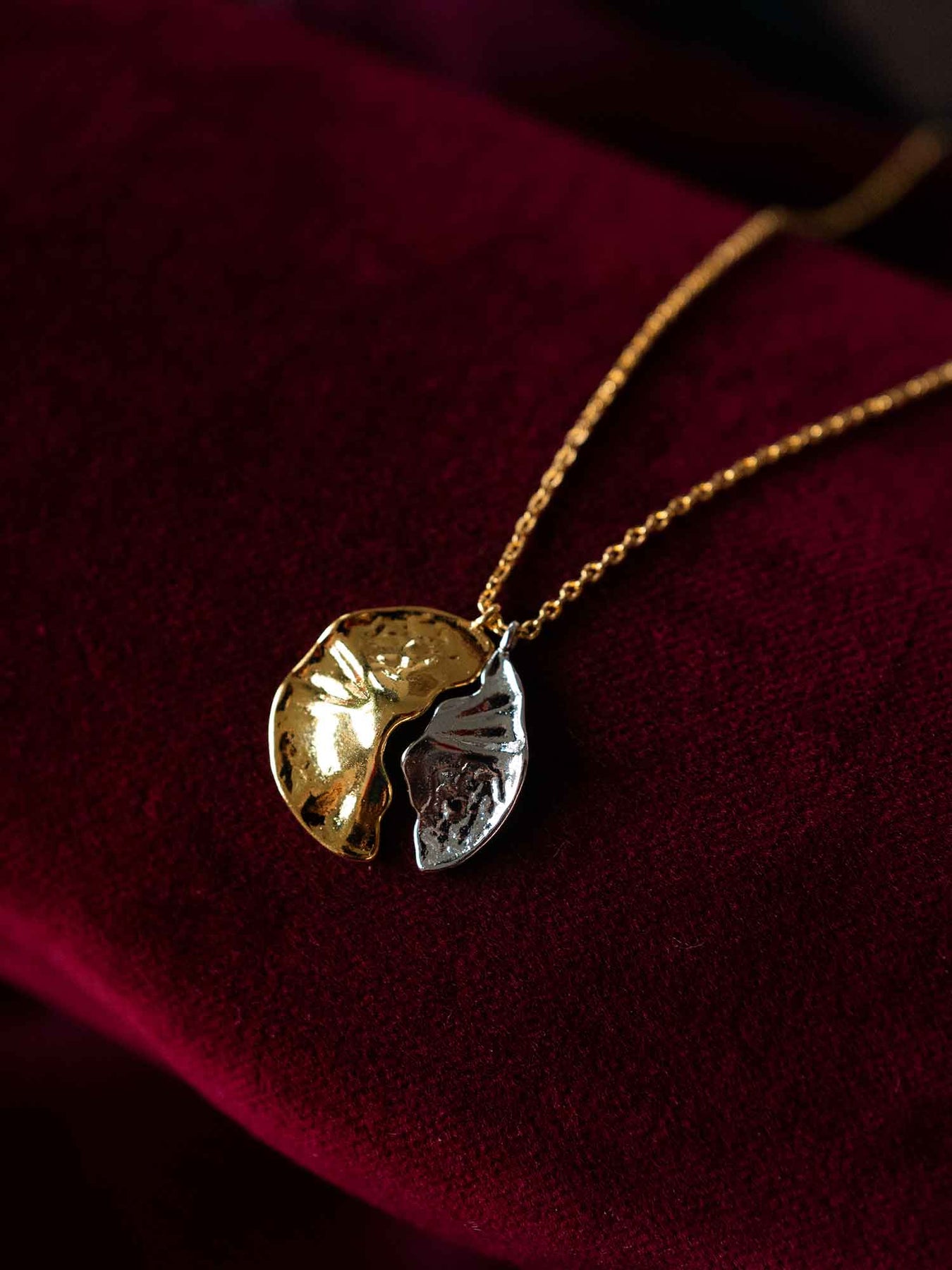 Worn against open or structured necklines, it sits neatly at the center of the chest and integrates easily into both minimal and layered arrangements.