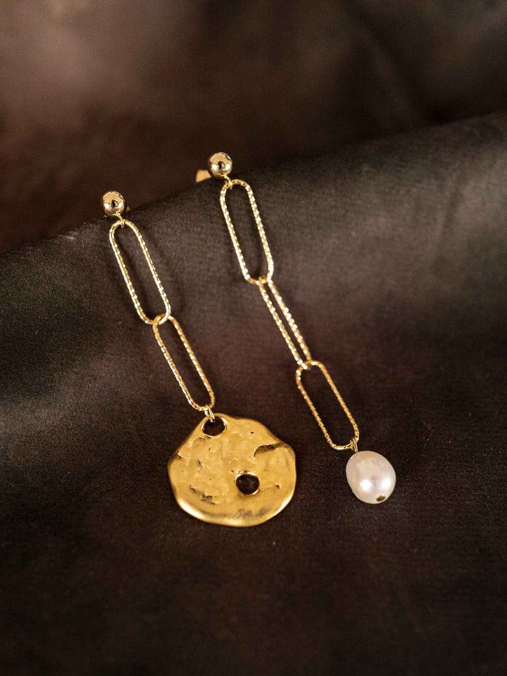Material: 18k gold-plated brass, freshwater cultured pearl, surgical-steel post (nickel-free)