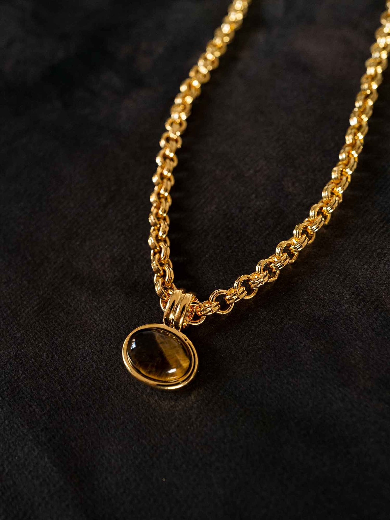The exquisitely sturdy chain intertwines with the mystery of twilight, while the 18k gold-plated surface adds a touch of discreet opulence. The lobster clasp allows for elegant length adjustments.