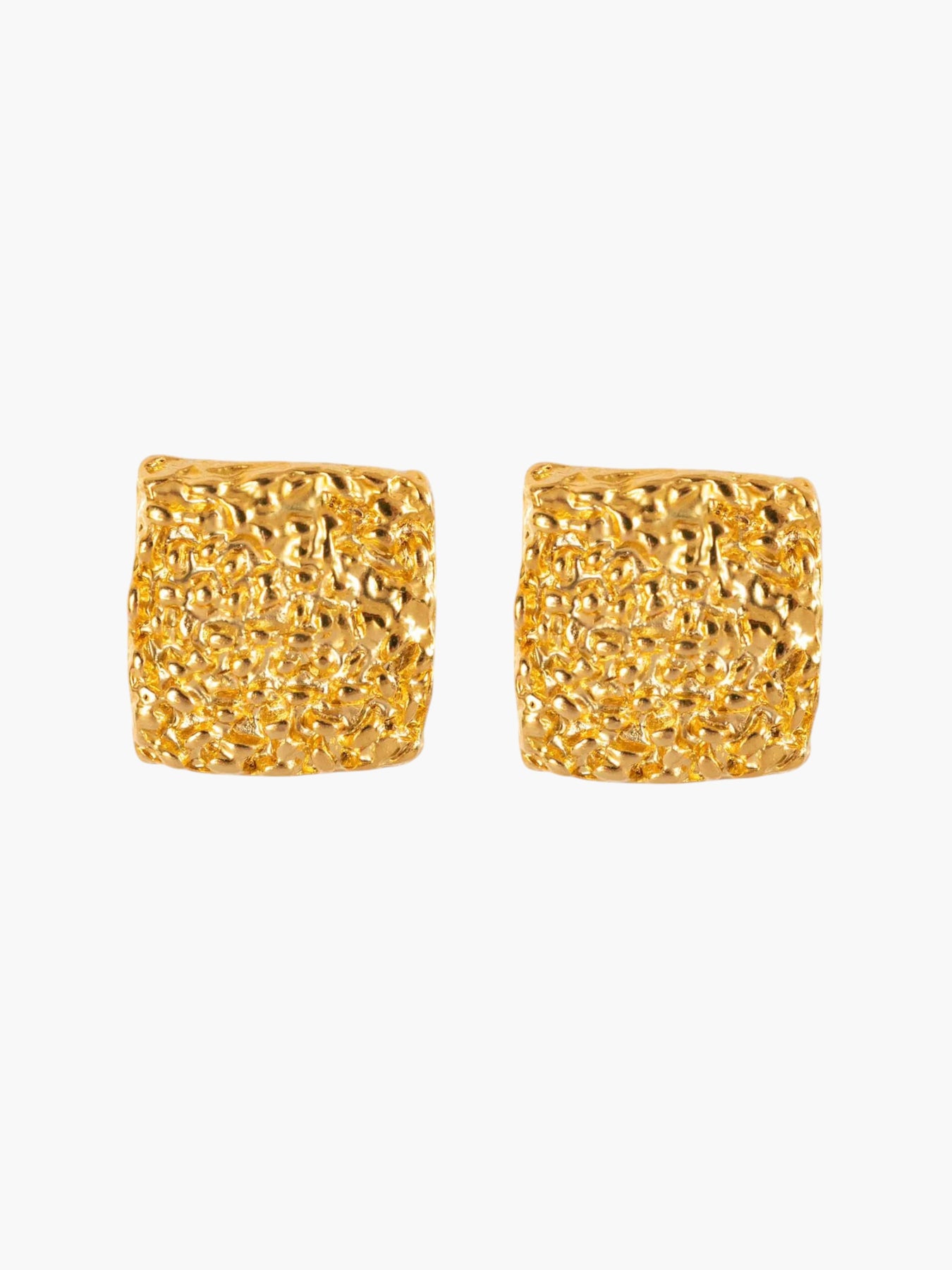 Simple yet elegant small square earrings. They are light and delicate, perfect for all-day wear. The 18K gold-plated surface features a refined folded pattern that highlights the exquisite craftsmanship of the piece.