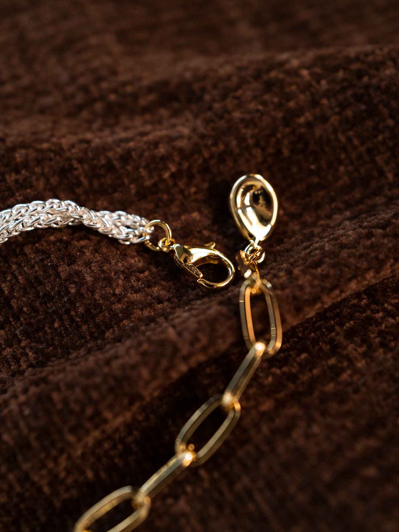 This bracelet features a unique design that combines gold-plated and silver-plated brass. The color combination makes the bracelet very appealing and is the perfect complement to your personal style.