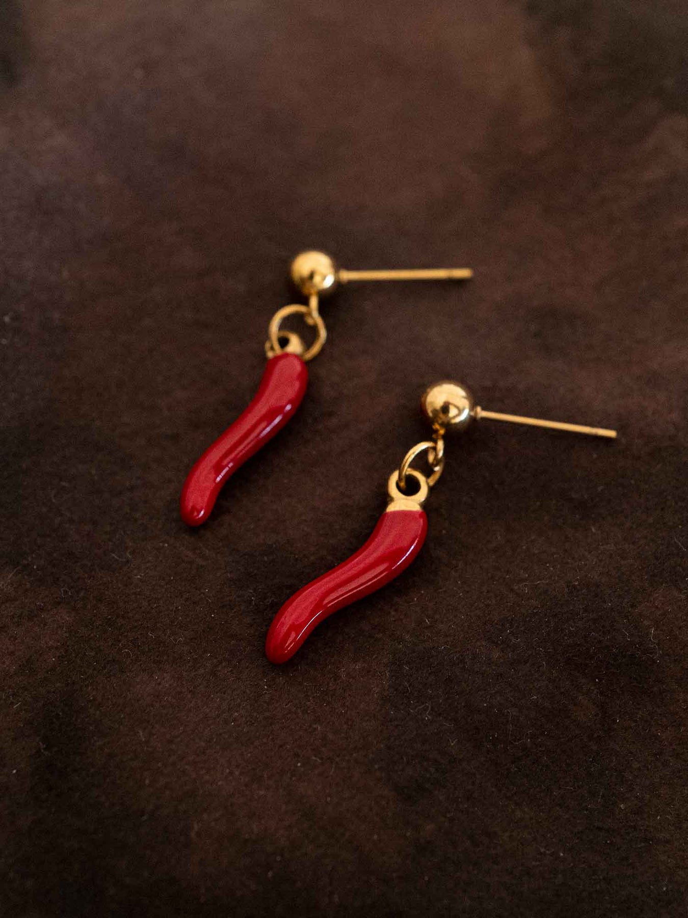 Fun, fiery, and full of personality. The Pimienta earrings channel summer heat with a bold red pepper charm that swings playfully from a golden drop. Waterproof and made with stainless steel, they’re perfect for sun-soaked adventures and spicy nights out. Lightweight and full of flair, these mini chili drops are a conversation starter with a wink of mischief.