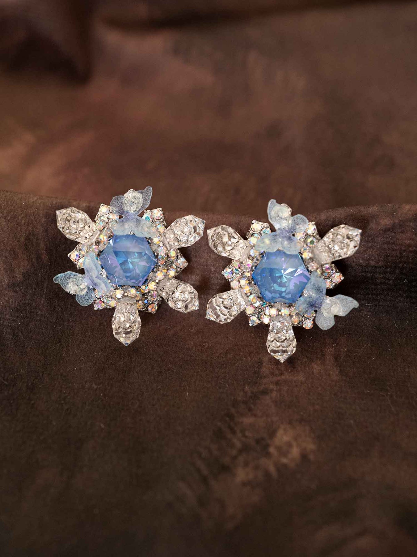 Dreamy and enchanting, the Safina earrings capture the beauty of a starlit sky. A radiant blue crystal sits at the heart, surrounded by glistening pavé-set stones and delicate butterfly details. Ethereal yet bold, this pair adds a touch of fairytale magic to any look, making every moment feel extraordinary.