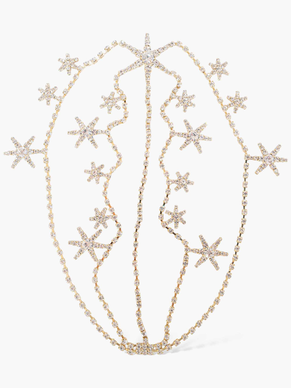 Channel celestial elegance with the Fiorenza Tiara, a breathtaking piece adorned with intricately placed crystal stars. Inspired by the night sky, this exquisite design drapes delicately over the head, creating a graceful, ethereal silhouette. The shimmering crystals catch the light from every angle, making it the perfect statement accessory for weddings, galas, or any occasion where you want to add a touch of starlit glamour. Handcrafted with care, this tiara adds a regal, yet modern, flair to any ensemble.