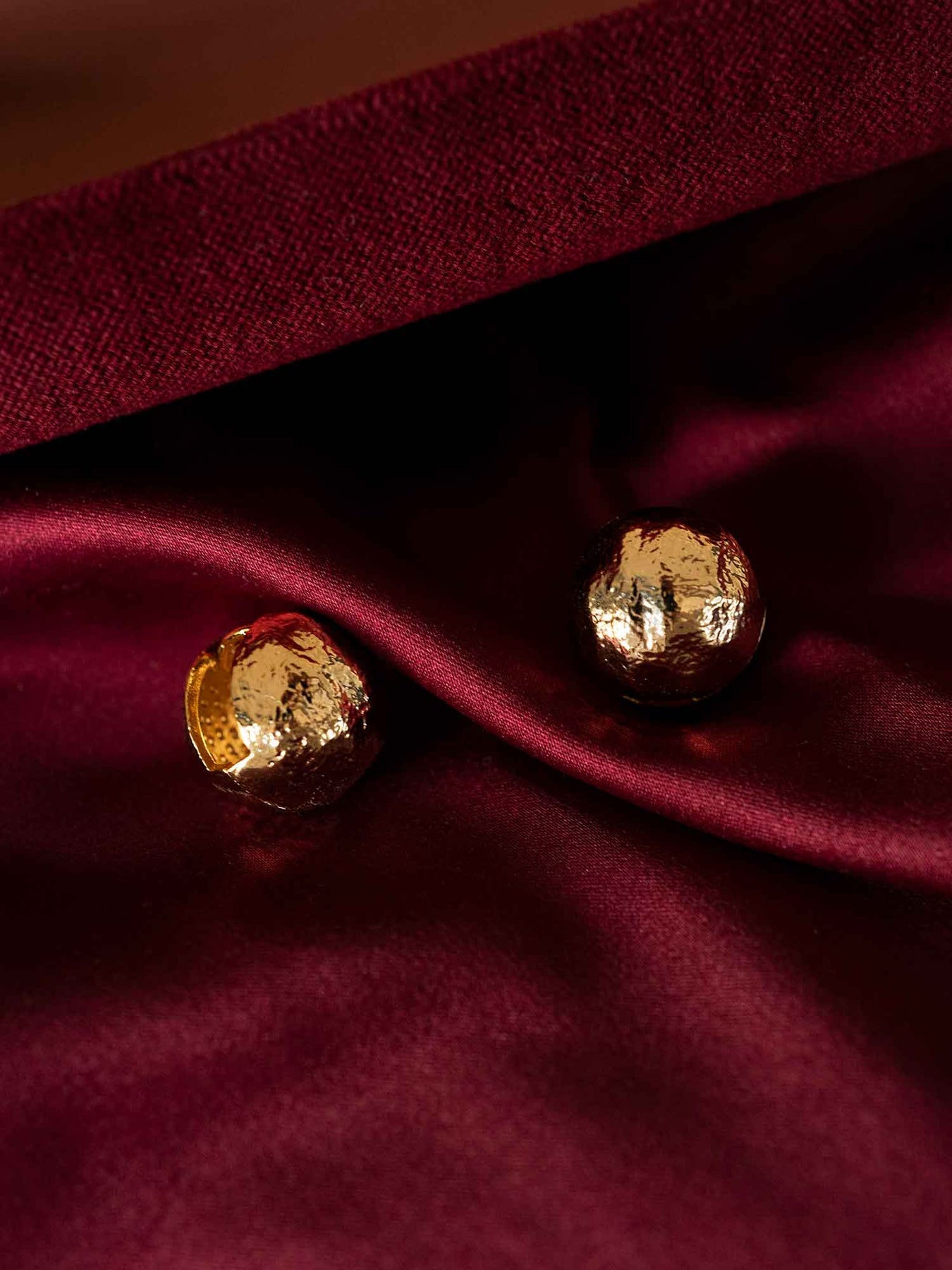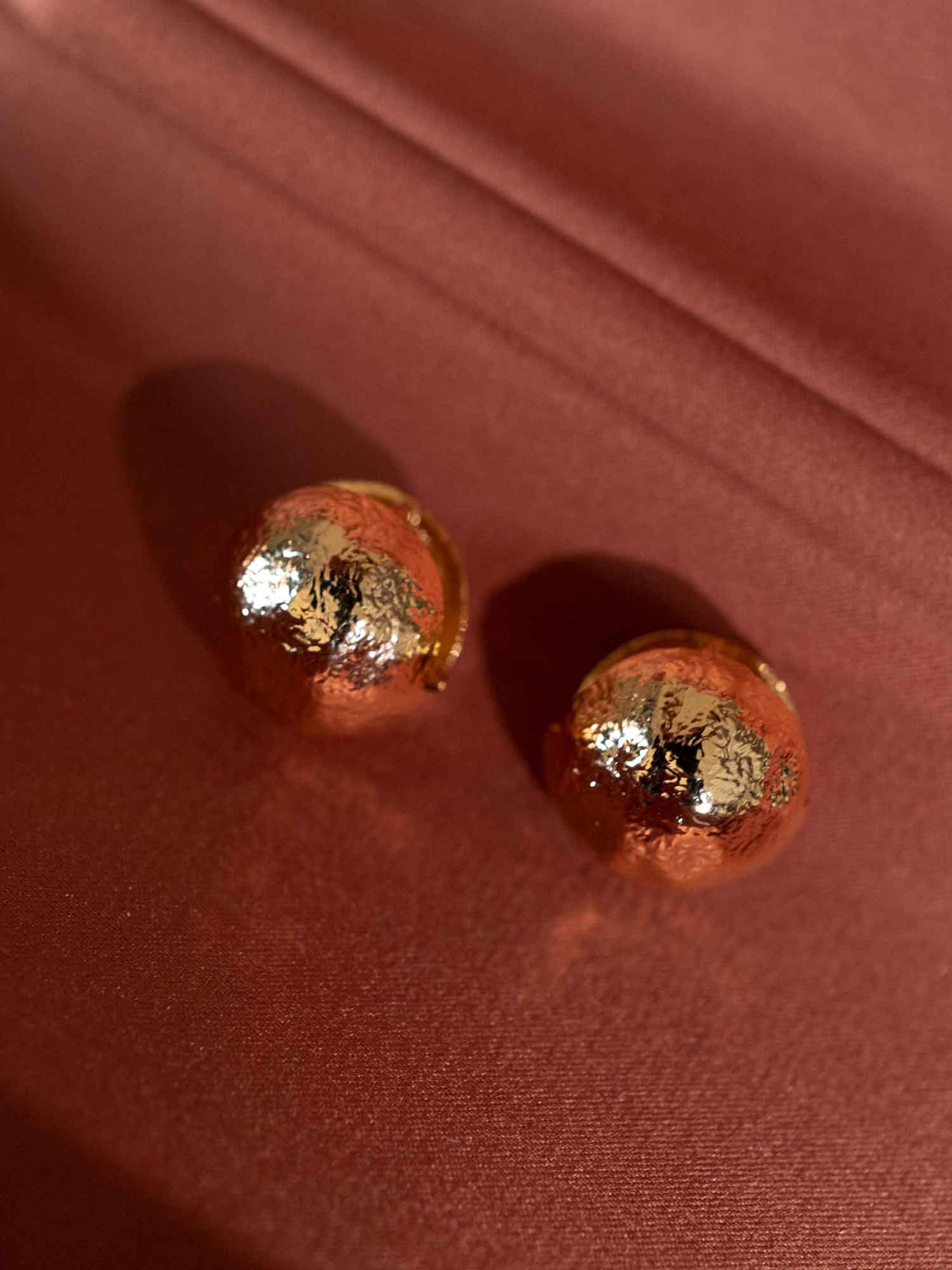 A quietly sculptural pair, designed around a rounded, orb-like form that sits close to the ear with a satisfying sense of weight. The softly irregular surface reflects light in a subtle, lived-in way rather than a high-gloss shine, giving the piece depth without excess.